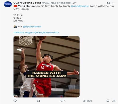 杨瀚森这场比赛还完成了一个单臂劈扣,利拉德在现场观战就做了一个惊呼的表现,杨瀚森在发展联盟的信心是完全打出来了。