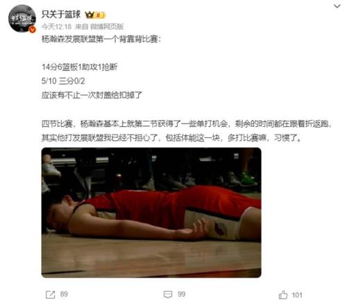 博主:杨瀚森在G联赛基本只是第二节获得一些单打机会,更多时间还是往返跑,这实际上对练体能效果更好,多打比赛就习惯了。