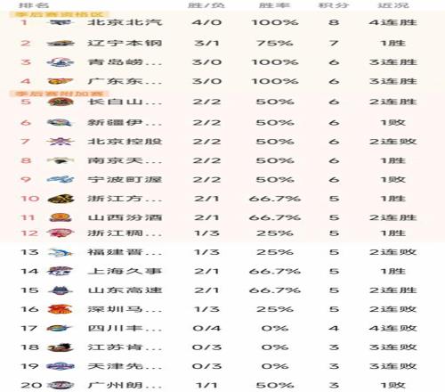 CBA第四轮结束了6场对决,最新积分榜如下,北京4连胜领跑