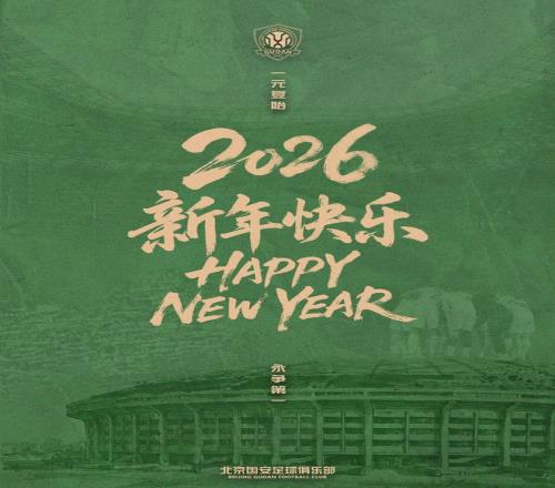 2026,新年快乐! 北京中赫国安足球俱乐部 2026-01-01 11:21:16 一元复始永争第一北京国安足球俱乐部祝球迷朋友们新年快乐!即可购买北京国安官方授权商品 中超 新年快乐! 北京国安足球俱乐部 2026新年快乐 上一篇: 博主暗示方昊转会浙江:你也许还会身着熟悉的颜色 下一篇: 新鹏城鸟枪换炮!刘祝润队友带刀,阿代米+小戴组双核锁定奥乌苏
